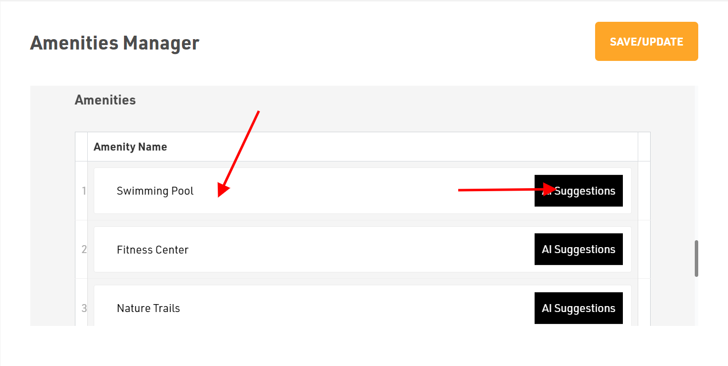 Last comes the Amenities in which you can type or generate it using our AI feature by clicking on AI Suggestions.