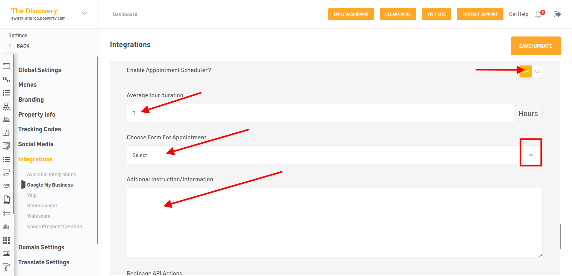 - If you choose Yes in the Appointment Scheduler, fill in the number of hours for the average tour duration and choose the form from the drop-down menu for the appointment. If you select "No" for step 9, you do not need to fill anything.