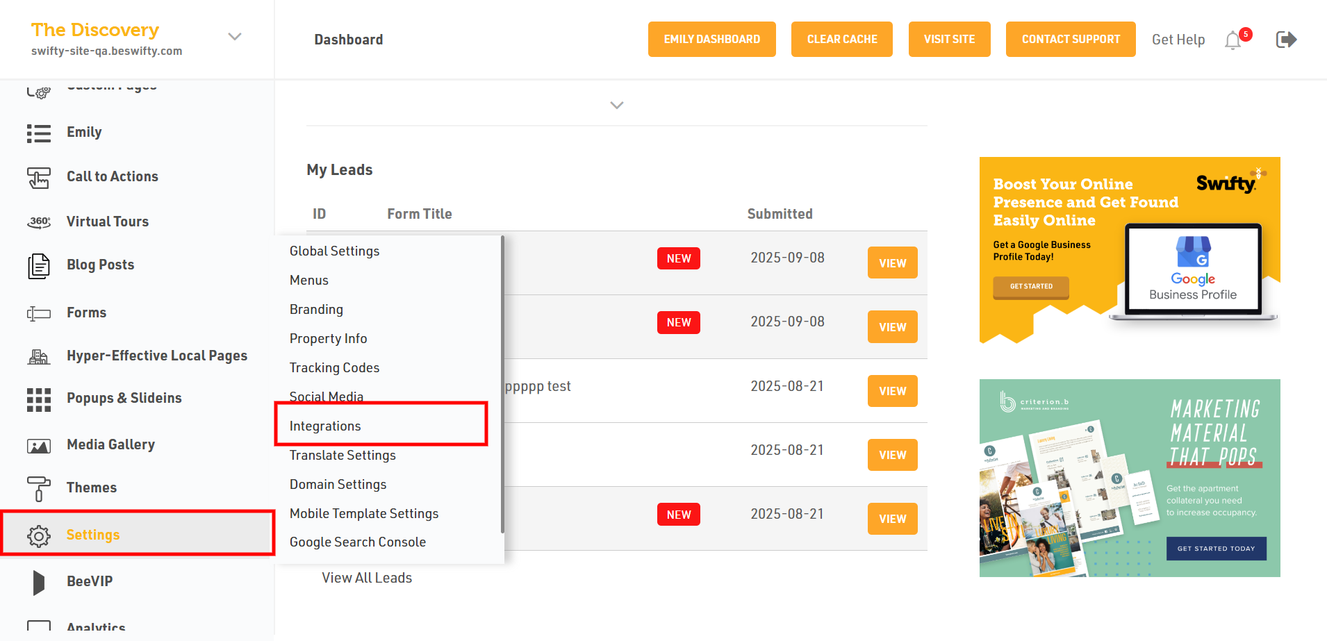 - Log in to the dashboard of your property website at manage.beswifty.com.