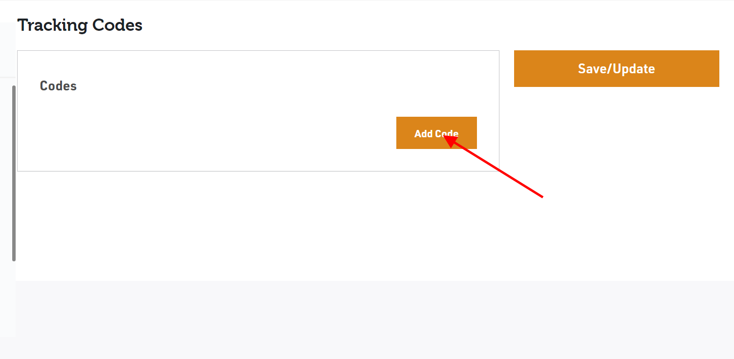 - In the left sidebar, navigate to Settings > Tracking Codes.