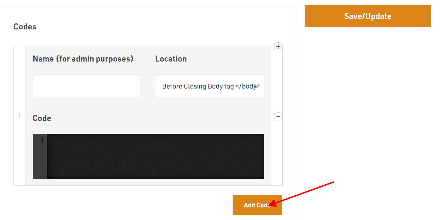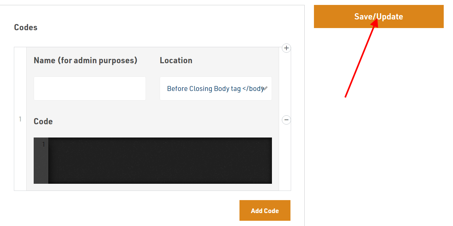 Save/Update at the bottom of the page. This action will save your changes and ensure that the tracking codes are activated on your site.
