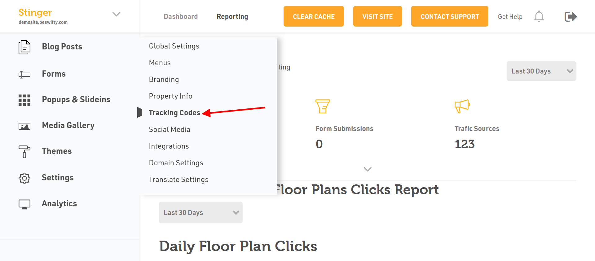 - Login to the dashboard of your property website at manage.beswifty.com.