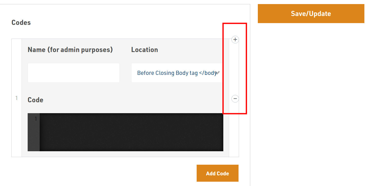 - If you want to add or remove any code, you can click on (+) or (-) sign on the right-hand side.
